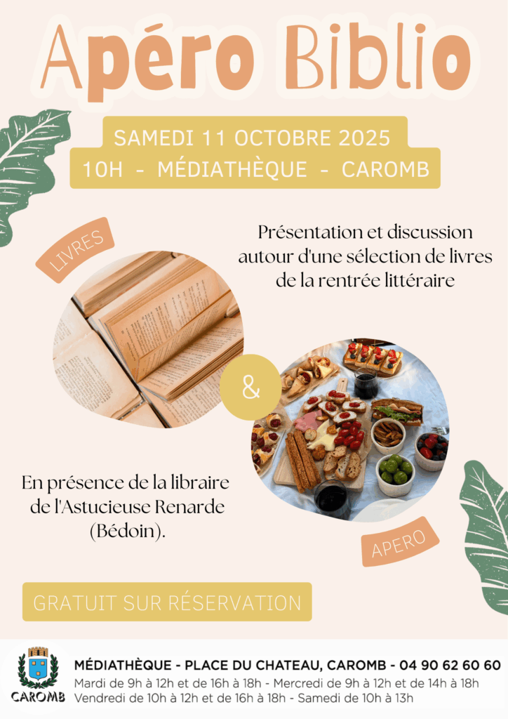 Samedi 10 octobre 10h00 à 12h00 à la médiathèque de Caromb